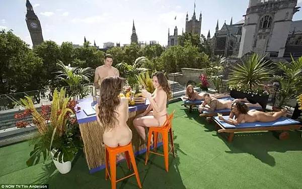 這家裸體露台還含有一個開放性的迷你雞尾酒酒吧,一個專門曬太陽浴的放鬆區域,這是英國網際網路電視Now TV想出來的創意,其總經理還說,生命不能被束縛……