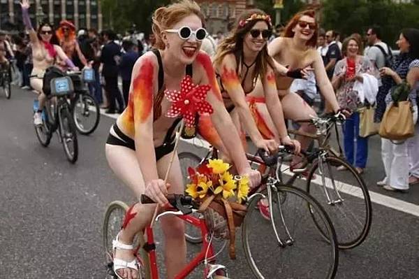 但其實說到裸騎的背後還是有動人的原因的,2004年兩個英國人成立了「世界裸騎組織」,呼籲大家通過裸體騎車的方式抗議當今社會過多使用汽車對環境造成的傷害。