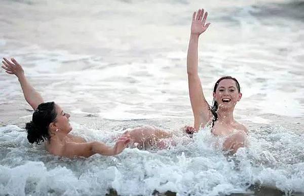 舉辦地點Druridge灣的海水已讓人狂打寒顫。今年約有500人參加這一號稱英國規模最大的裸泳活動,籌集資金將用於幫助精神病慈善機構MIND。