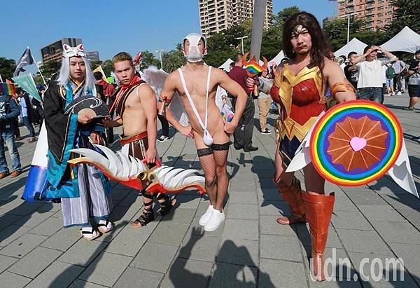 三年前台灣出現了一位偽娘,由於他善於打扮,敢穿敢露,也一直在「進化」,倒是讓人相當驚艷,網路上他自稱「偽娘小Bee」,今年又自封「大奶酥」。老頭認為如果參加遊行的朋友都能有他的條件,高雄的同志遊行一定能揚名國際。遺憾的是他雖然不時「出現」在台灣各地,對高雄這個「盛會」似乎沒興趣。