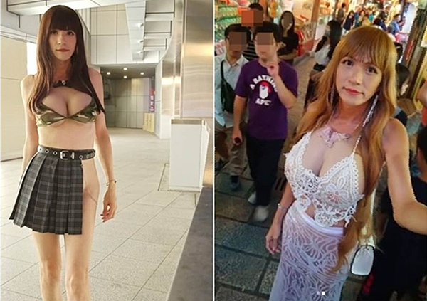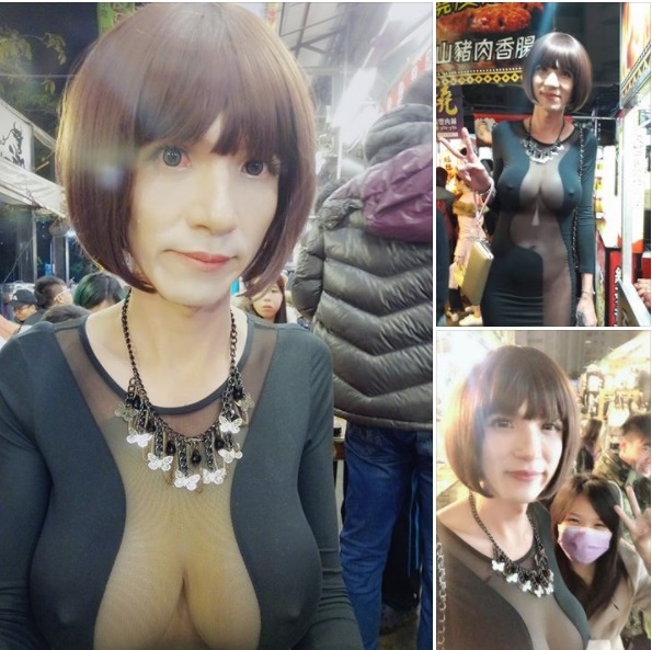 日前因穿著一身性感薄紗騎機車拿著自拍棒自拍而爆紅的偽娘小bee,近日又高調現身夜市。