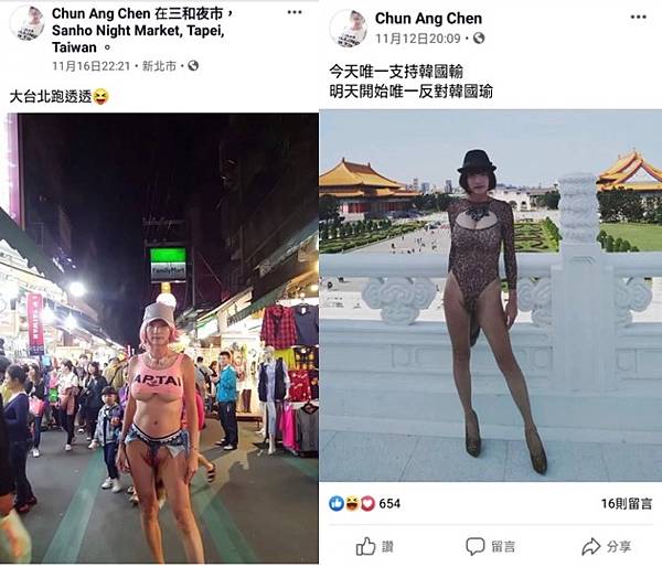 昨天 (106.11.25) 是蔡政府上台後,高雄舉行的第二次同志大遊行,不少南台灣「大」姑娘都「勇敢地」跑出來了。當然,也有不少急於想成名的「小」姑娘搶著插花露一手。去年冒出了一個國中女老師鄭敏,今年當然也有人有樣學樣,在奶頭貼花「勇敢地」走出來,嚷著要爭取奶頭的自由。然而可能貨色太差,沒能搏得媒體版面。(老頭註:據去年活動發言人黃楷翔說,去年是高雄第七次舉辦同志遊行)