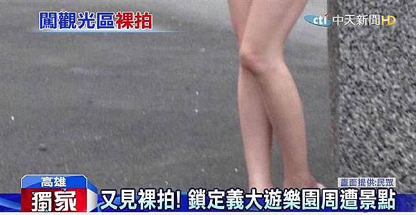 不料過沒多久又傳公眾場所裸拍!從一個私密攝影群組流出的照片所見,一名穿著高跟鞋的長髮女子,全身赤裸在鏡頭擺出各種姿勢,背景卻非私人場所,而是由高雄市義守大學路牌一路拍到大馬路上。有媒體根據照片找出,裸照拍攝地點就在觀音山高爾夫球場門外,該處附近有很多知名景點,例如只須2分鐘車程,便來到知名的義大遊樂世界,另外距離2.2公里外便是義守大學。
