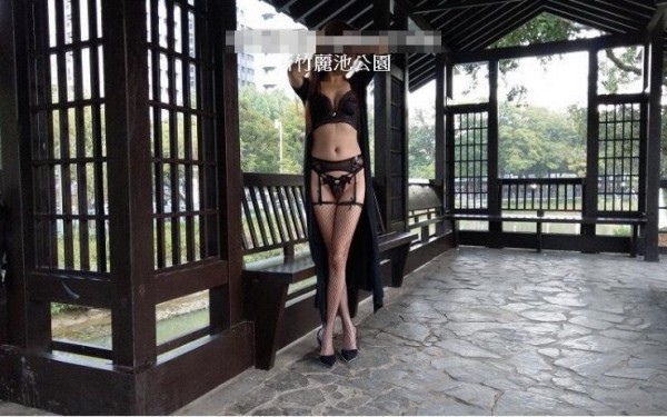 記者發現,新竹縣市大部分的知名景點都曾有裸拍族的蹤跡,該名美魔女去年7月就疑似在竹市知名景點青草湖穿著串珠丁字褲撩人外拍,這次,她鎖定剛整建完工的麗池園林,將老樹、日式園林建築當成背景,穿著黑色連身薄紗,搭配爆乳胸罩、高衩蕾絲網襪與丁字褲,搔首弄姿拍照,秀出馬甲線與若隱若現的私密處,有幾張照片甚至在平常車水馬龍的公園路上取景,且拍照時間都在白天,絲毫不怕曝光,這一系列的照片上個月底在論壇PO出,獲得網友高回響。
