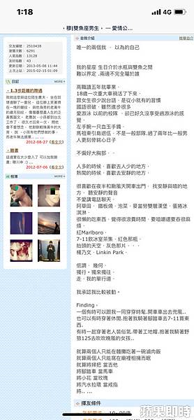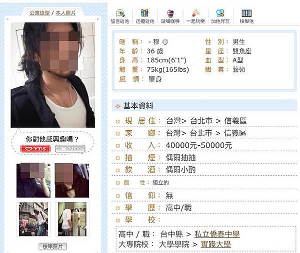 群交事件爆發後,穆姓攝影師的資料不斷被起底,除了臉書、ig之外,他又被人發現過去曾玩過交友網站「愛情公寓」,帶有一絲頹廢風格的大頭照,搭配文青風的自介,讓他在該網站上也有1萬3000多的人氣。
