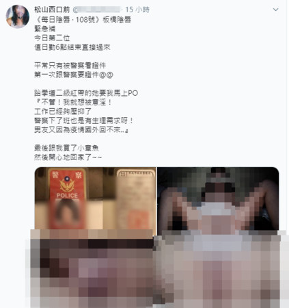 情色攝影師穆川申PO出一名女警的服務證及露點特寫照,引上千人朝聖