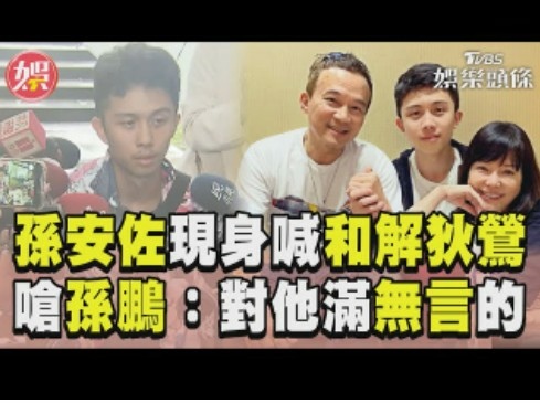 除此之外,更傳有找阿西老婆「西嫂」幫忙化解災厄。總之經歷一切,孫安佐更嗆孫鵬:「其實還有很多事情我不想講,畢竟他還是我爸,爸拜託別做偷雞摸狗的事情,你有種就直接跟我說。」孫安佐自曝已與孫鵬沒聯繫;對於媽媽狄鶯嗆與孫鵬離婚,孫安佐丟下一句「我媽媽開心就好。」