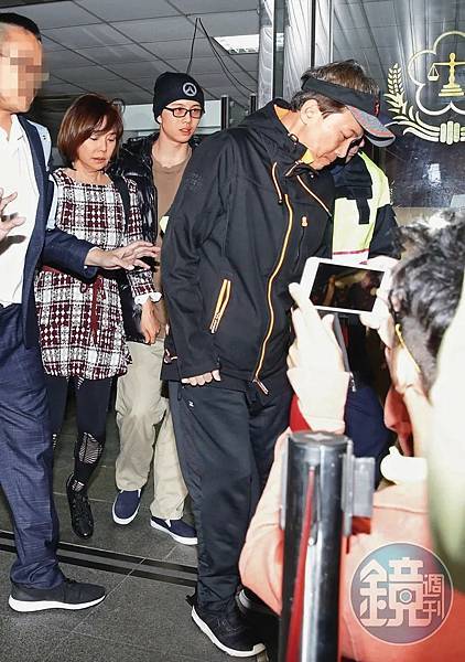 2018年,孫安佐(中)在美國服刑期滿,回台後被帶往士林地檢署偵訊。左為狄鶯、右為孫鵬