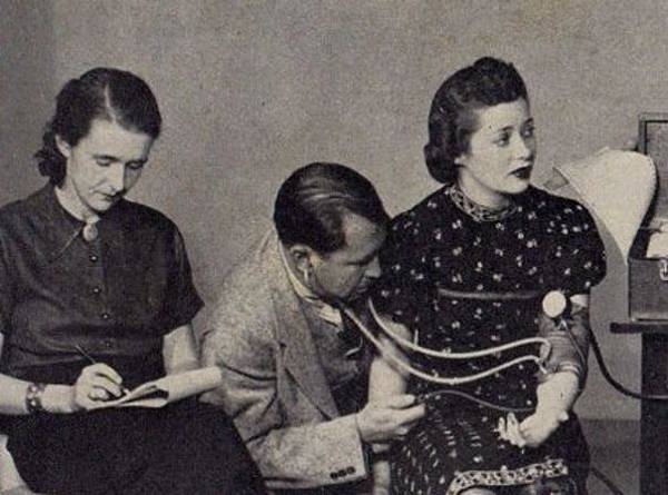 為什麼呢?因為她聲音顫抖,手心冒汗,呼吸節奏也明顯加快了。人眼都能辨識的謊言,測謊儀怎就測不出來呢?由於當時的技術出汗測試還沒辦法實現,但是血壓可以量啊!馬教授靈一現,遲遲沒有進展的測謊儀似乎找到了突破口。三人改良了測謊儀,馬教授在胸前綁上了用來測心跳和血壓的套索,成為改良品的第一個受測人。