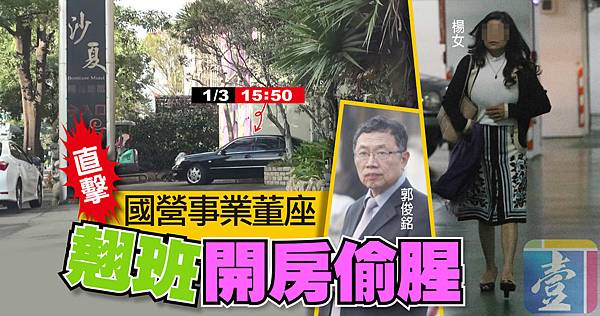 民進黨在去年底九合一大選中吞敗,蔡英文為此辭去黨主席負責,但就在選後黨內士氣呈現一片低迷之際,《壹週刊》卻接獲讀者爆料,直指國營事業「台灣自來水公司」(以下簡稱台水)董事長郭俊銘,竟在大選前後,密集和在廣播電台擔任高層的楊姓人妻上摩鐵偷情!