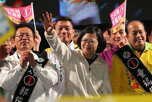 郭俊銘(中)過往選立委時,妻子游淑惠(左)總是挺夫不遺餘力。(圖:蘋果日報)