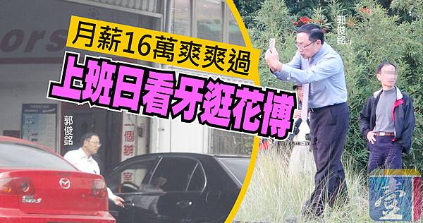 1月14日下午3點多,《壹週刊》直擊,郭俊銘搭乘台水公務車,一路從台中市驅車直抵位於豐原的牙醫診所看診,看完牙後,郭男竟又慢慢晃到診所附近的葫蘆墩公園花博園區,在園區內到處拍照留念,且每一處景點都駐足許久,顯得心情極為輕鬆,就這樣在良辰美景中悠閒漫步度過週五午後,直到夕陽西下,才又搭乘公務車返回台中市區。