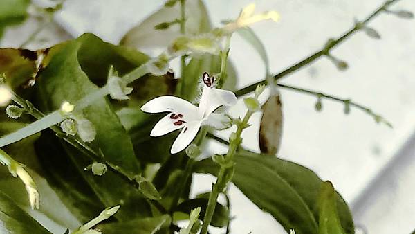 老頭插嘴:南非葉不開花是胡扯,冬末春初開花,有子。因為生命力強,隨便剪枝扦插都會活。民國一百年後,台灣大量繁殖,如今到處可見。