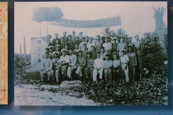 民國35年12月,內政部與國防部收復太平島,支隊人員出發前在南京留影,最前方為支隊指揮官林遵。