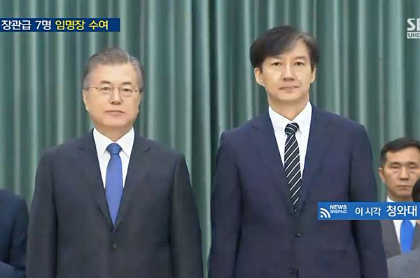 文在寅9日批准6名內閣官員的任命案,包括科學技術資訊通信部長官崔起榮、女性家庭部長官李貞玉、廣播通信委員會委員長韓相赫、公正交易委員會委員長趙成旭、金融委員會委員長殷成洙。不過南韓媒體9日一整天的焦點,全都放在新任法務部長曹國的身上。現年54歲的曹國是首爾大學法學碩士,曾任法學研究所教授,曾出任青瓦台民政首席秘書,被視為文在寅親信之一。由於曹國向來高調批評權貴行為,素有「江南左派」之稱。但曹國上個月獲文在寅提名為法務部長後,卻爆出一連串特權醜聞。