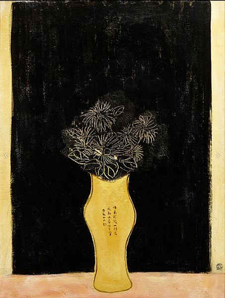 《題字瓶與白菊》 1930年代 常玉 布上油畫 72×53.5cm