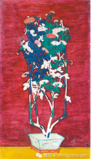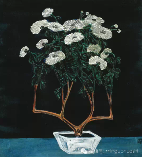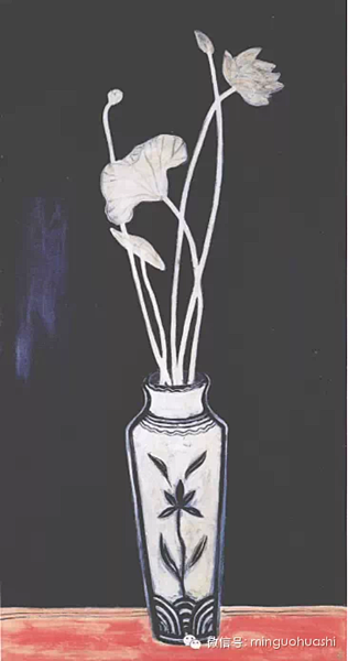 “磁州窯瓶內的白蓮”1950年代油畫纖維板