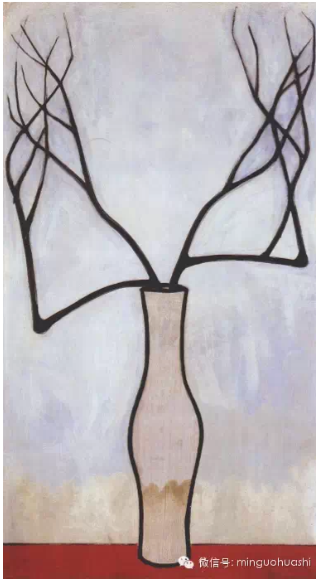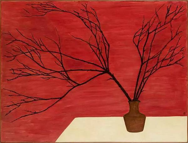 “枯枝”1950年代油畫木板。晚期的常玉受到漆器的啟發,作品中大量融入民俗藝術,在深色的背景中勾勒出簡單的線條。烏鐵一般的線。肯定明確,入木三分,不再是迷夢