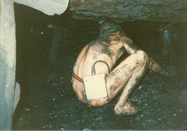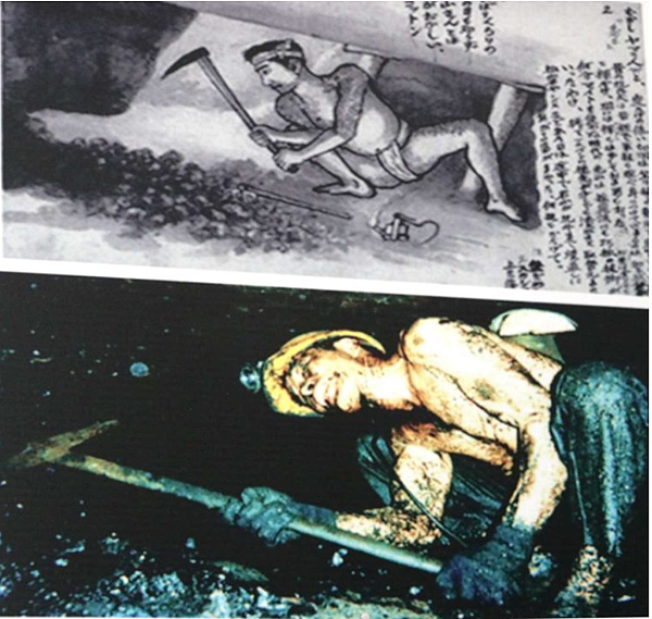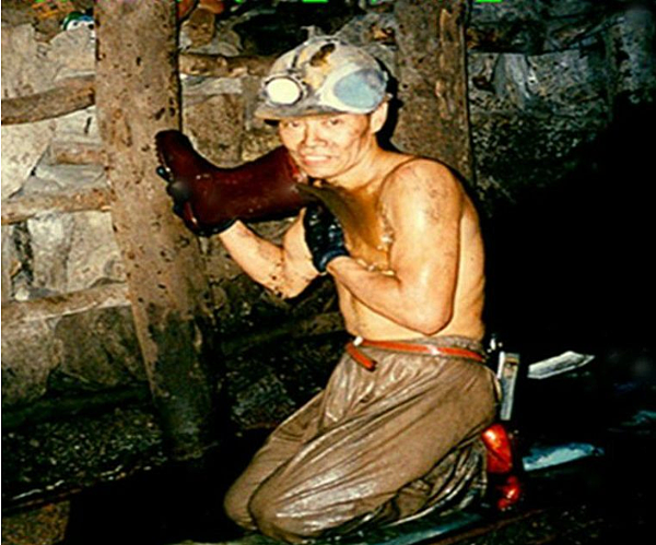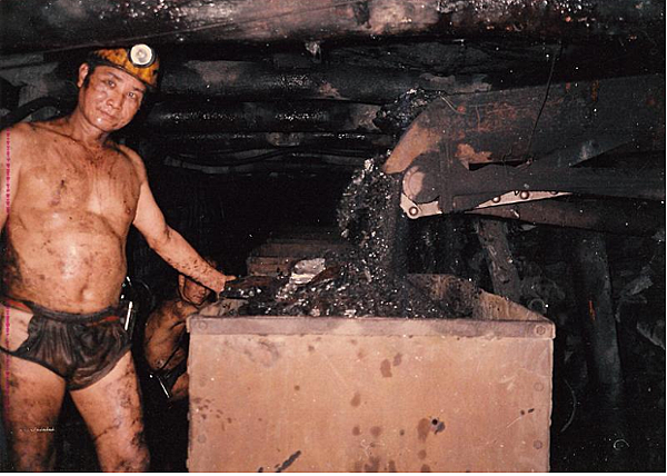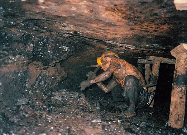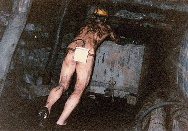 礦坑悶熱潮溼,礦工往往赤裸工作,否則根本熬不住高溫煎熬