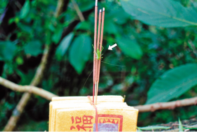 祭拜用的線香上,還出現被認為是鬼魂化身的「螽斯」駐留