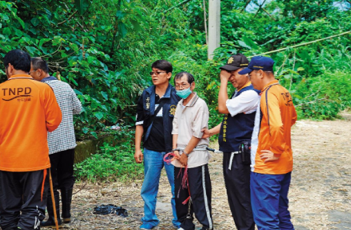 警方帶凶手陳文釧重回現場,模擬用木棍打死同居人的經過