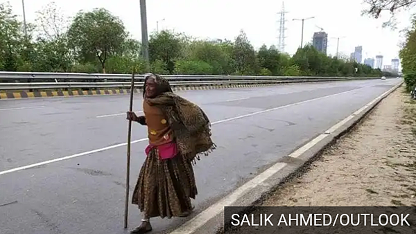 卡約迪(Kajodi)和她的家人一起步行回100公里外的拉賈斯坦邦老家。他們吃著餅乾,抽著傳統的手捲煙消除饑餓感。她拄著拐杖走了3個小時後,記者艾哈邁德(Salik Ahmed)遇到了她。她說,如果還有交通工具運行,她會買一張回家的票。