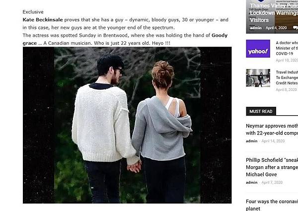 好萊塢巨星凱特貝琴薩與年僅22歲的加拿大搖滾歌手古迪格雷斯(Goody Grace)打得火熱