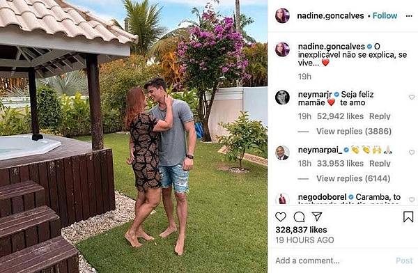 內馬爾的母親娜汀在2016年與他父親離婚,結束25年婚姻,這次藉IG高調宣示戀情,除了兒子的祝賀留言,內馬爾父親也以拍手與合掌的圖示給予祝福。
