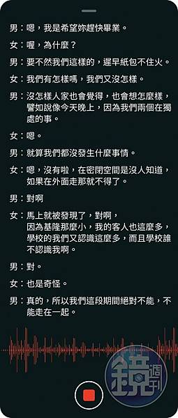 女方回說:「嗯。」陳世宗:「就算我們都沒發生什麼事情。」女方:「嗯,沒有啦,在密閉空間是沒人知道,如果在外面走那就不得了。」女方又說:「好煩哦,我是說我們二個這樣私底下相處,你覺得這樣好嗎?」