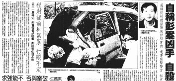 另一方面,彭婉如姦殺案雖然警方鎖定計程車司機為犯案對象,但案情始終未能突破。1999年9月15日清晨,在台北縣石碇鄉與坪林鄉交界的106乙縣道11公里處,有一輛未熄火的車號BX—373計程車,警方查出是台北市憶前車行昨晚失竊的。後座倒臥一名身穿灰色花格子上衣,卡其色長褲男子,留有一張便條紙寫給妻子林愛慧的遺書,放在駕駛人執業登記證旁,字跡很娟秀,但卻密密麻麻,不知所云。信中除提到他對不起老婆和社會大眾,最不該的是殺害彭婉如,但這封遺書卻沒有署名。警方不敢怠慢,拓下死者指紋比對,發現竟是當年李雅芳裸照案裡逃過一死的程財福。