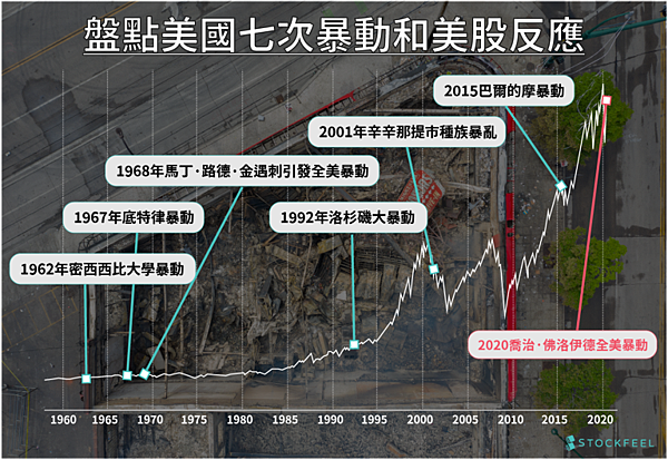 從歷史上看,美國近半個世紀中的各次暴動,並沒有對股市產生過多的負面影響。