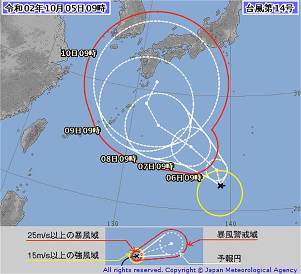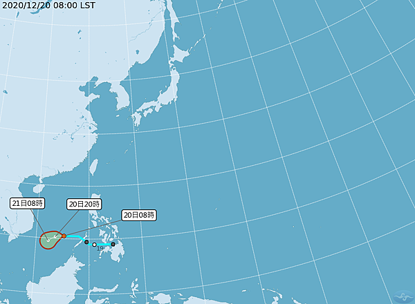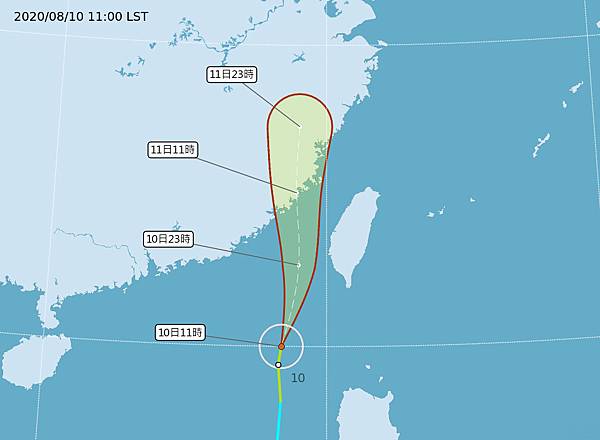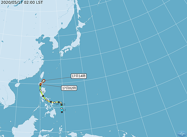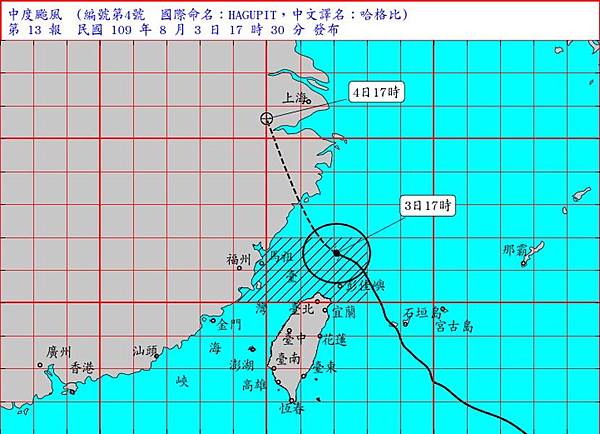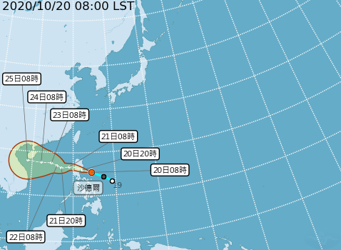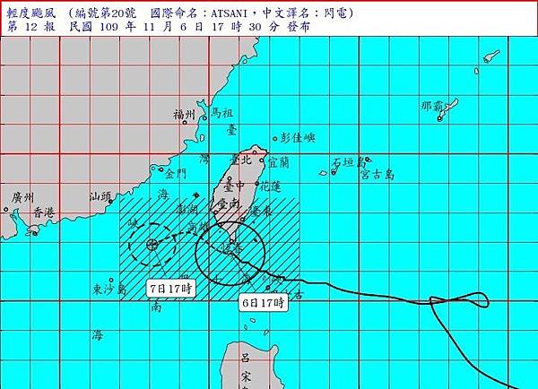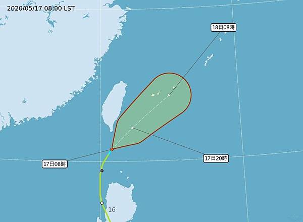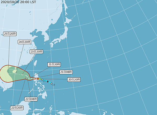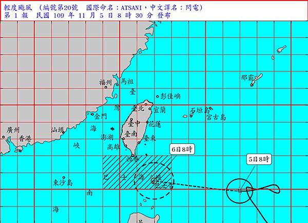 中央氣象局於5日上午8時30分發布第20號颱風閃電的海上颱風警報。