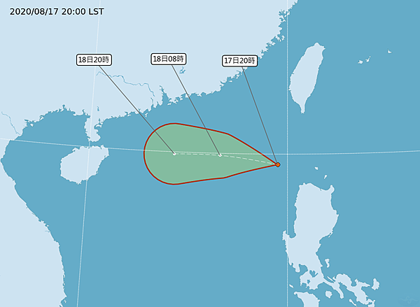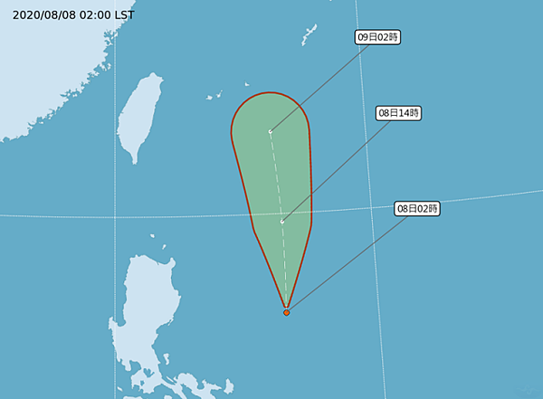 2020-08-18 00:58 熱低壓TD09生成 恐24小時內增強為第7號颱風「無花果」