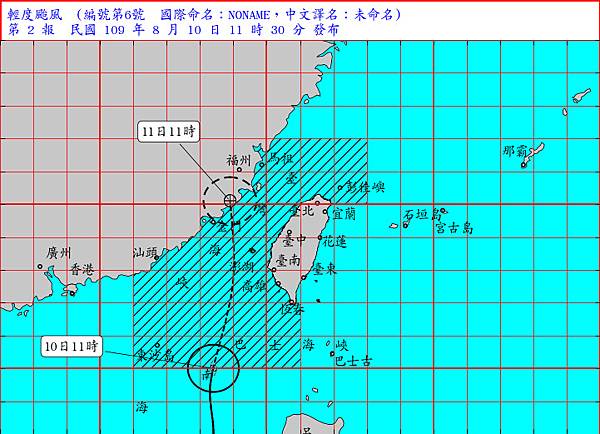 九日晚上在台灣西南方,大約在呂宋島北部的西方海面,有熱帶性低氣壓形成,十日發展成為今年第六號颱風「米克拉」,往台灣海峽附近移動。目前預測較有可能是偏西往福建方向移動,最快在十一日上半天可能登陸福建。