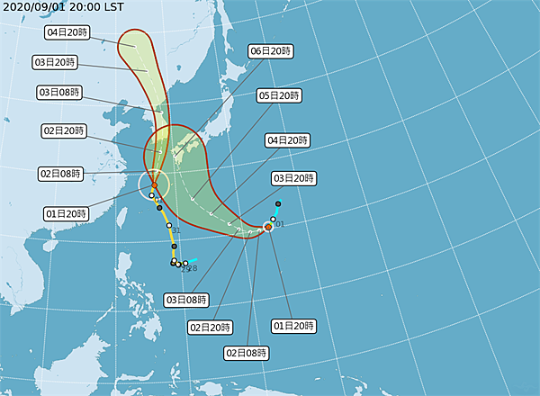 中颱梅莎逐漸遠離,第10號颱風「海神」最快109.09.01生成(已於20時生成),路徑也將一路向北,直衝日本南韓。