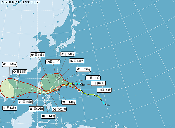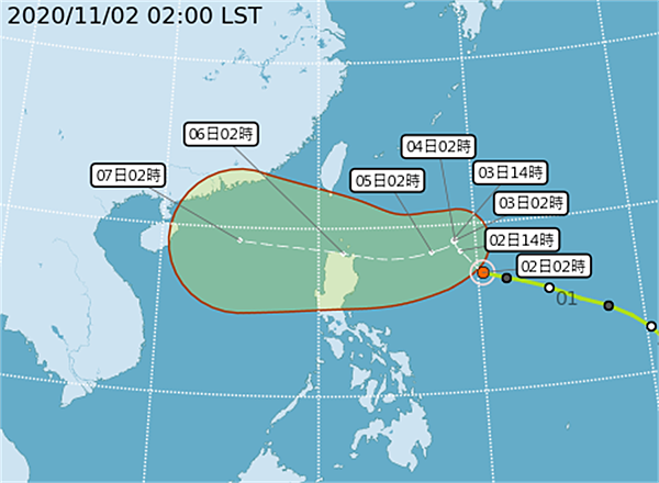 閃電颱風目前 (11/2) 在原地打轉,直到周三 (11/4) 周四 (11/5) 太平洋高壓增強,讓颱風往西走,朝巴士海峽南邊靠近呂宋島前進,周四五颱風外圍水氣將影響台灣,但路徑有變動空間,如果颱風一偏北,對台灣東部、東北部及南部的影響就更大。