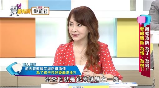 日前蔣萍上謝祖武主持的《震震有詞》,痛揭藏在心中的秘密,20年前的一天,夫妻吵架過後,原本以為等下就和好,不料老公一句「我一人就能搞定你們兩個」,蔣萍當場傻住,再問之下,前夫承認「說的就是你媽」,她大崩潰,趕回娘家問清楚,老媽卻摔門關上。自那天之後,母女不曾說過話,形同陌路20年。
