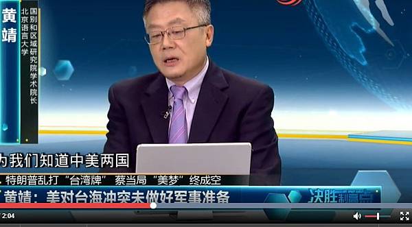 北京語言大學「國別和區域研究院」學術院長黃靖,近日在深圳衛視《決勝制高點》的節目中,面對主持人提問「解放軍在台海軍事演習,中國已經透過媒體,把接下來可能會發生什麼情況擺在桌面上說,美國、台灣能不能夠聽進去?」