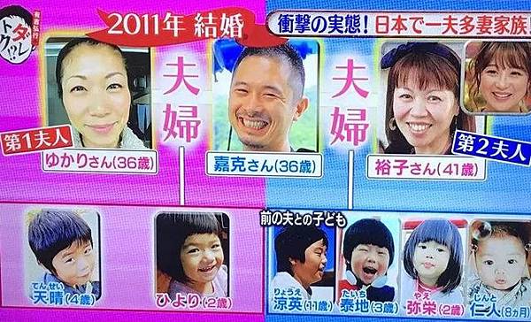日本有兩個較為「有名」的一夫多妻制家庭,上過節目,接受過採訪。