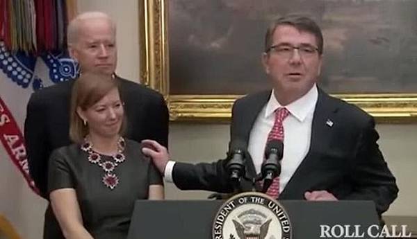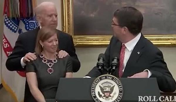 2015年2月17日,在新任國防部長阿什頓·卡特的宣誓儀式上,拜登站在卡特妻子史蒂芬尼身後,把雙手放在她的雙肩上,又把鼻靠近她的頭髮,引起熱議。拜登也被指在2015年1月參議員宣誓儀式的合照時段對一位參議員的女兒有過分親近的舉止而引發爭議。