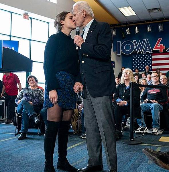 老頭插嘴:綜上報導,身高183的拜登 (因其妻身高168) 站在小隻馬女性身後時,習於對做出雙手放在女人肩上,然後聞女人頭髮的猥褻舉動。然而1942年出生的拜登被指控作出猥褻舉動時已是高齡70幾的老人。