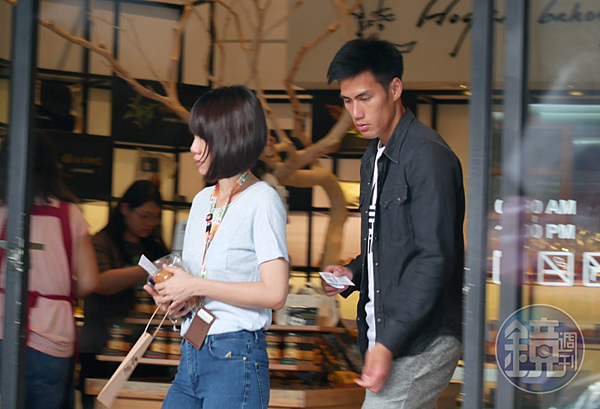隔天楊俊瀚(右)和體育主播張旖旂一同出門,到麵包店買東西吃