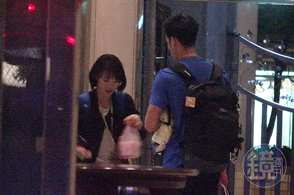 23:36 張旖旂(左)手提著宵夜急忙返家,等在她家大廳的就是楊俊瀚