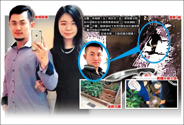 今年5月20日中午,朱與黃女家人一起吃午餐,晚上2人一同返回朱男在板橋的住處,深夜到隔天凌晨間,2人發生口角爭執,黃女遭殺害後被剃光頭分屍,朱男還將屍塊分裝至七個垃圾袋,埋在社區後方花圃。