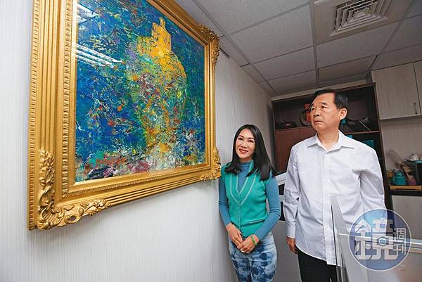 王應傑的中佳電力辦公室牆上,就掛著一幅胡寶莉的畫作,畫中是一座象徵「王」的寶瓶