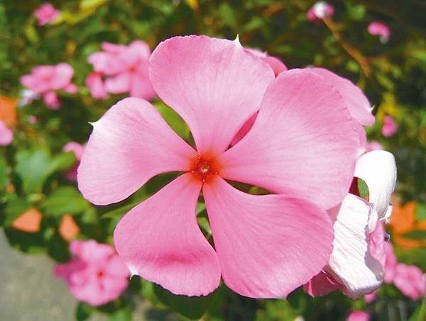 長春花適合種植於盆栽,花壇等,作為觀賞花卉,特別是大型花糟觀賞,無論是白心紅花還是紅心紫花,在花槽中起裝飾效果都非常美觀。