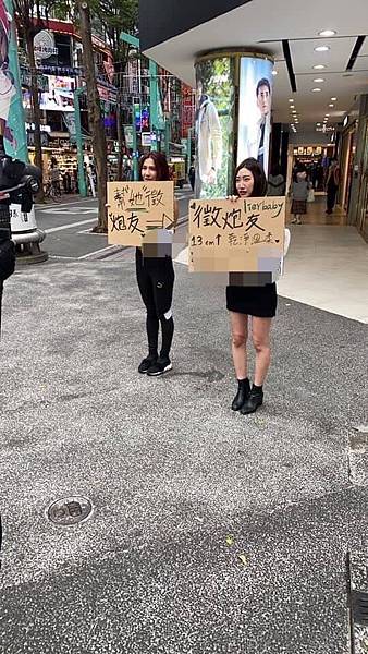 今天中午時分,男網友在《爆廢公社》發文,指出他在西門町看到二名年輕正妹舉牌,其中一女拿著「徵炮友,13公分以上,乾淨溫柔」的紙牌,另名女子則是親友團,手中也舉著「幫她徵炮友」的紙牌,兩個牌子上都留有Line ID。