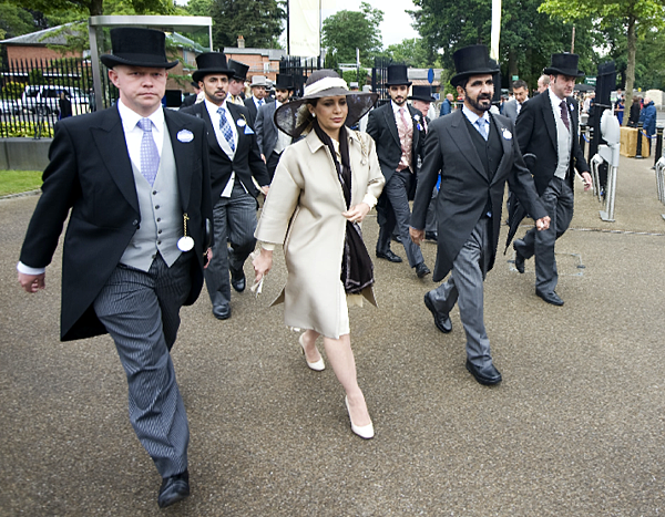 2008年6月19日杜拜酋長謝赫·穆罕默德·本·拉希德·阿勒馬克圖姆與王妃哈雅出席英國皇家賽馬會