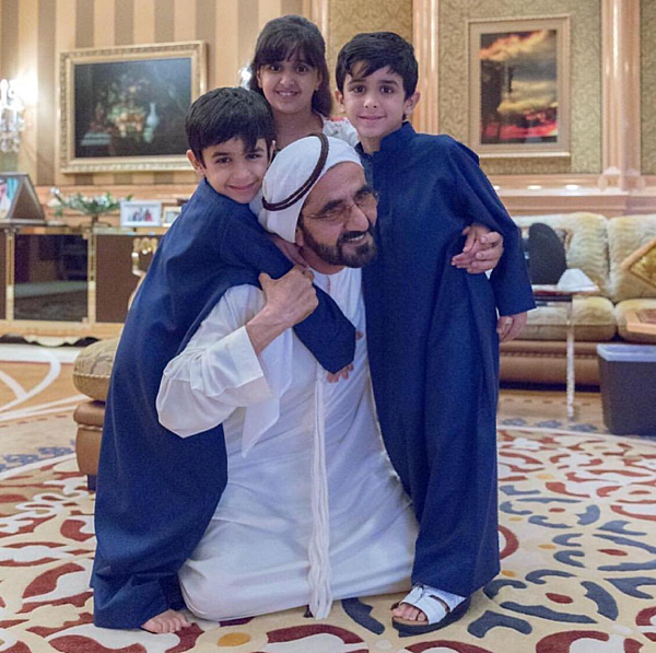 哈雅王妃與杜拜酋長穆罕默德的恩愛場面和與孩子的照片