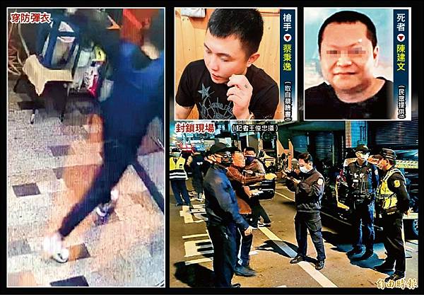 蔡一進公司、對著陳喊「建文哦!」隨即朝陳身上連開多槍,陳身上疑中三槍,其中胸部中兩槍,當場無生命跡象。